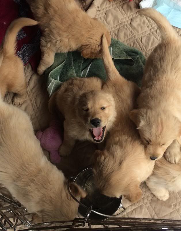 Unfortunately, we were not able to make it to the puppy party. I was pretty bummed about it, but J had to work. The puppies all went through a temperament test to make sure that they were matched to the best families. Fortunately, plenty of people posted pictures to the Facebook group for me. J emailed Barb to tell her that we were so sad that we couldn't make it, and she told us that the perfect boy for us will be Mr. Blue!! The two other families who will be getting boys are older than us, so Barb wanted them to have two more mellow puppies. Our boy was the most energetic, but she also said that he was incredibly attentive and biddable. Sounds like a perfect match to me!